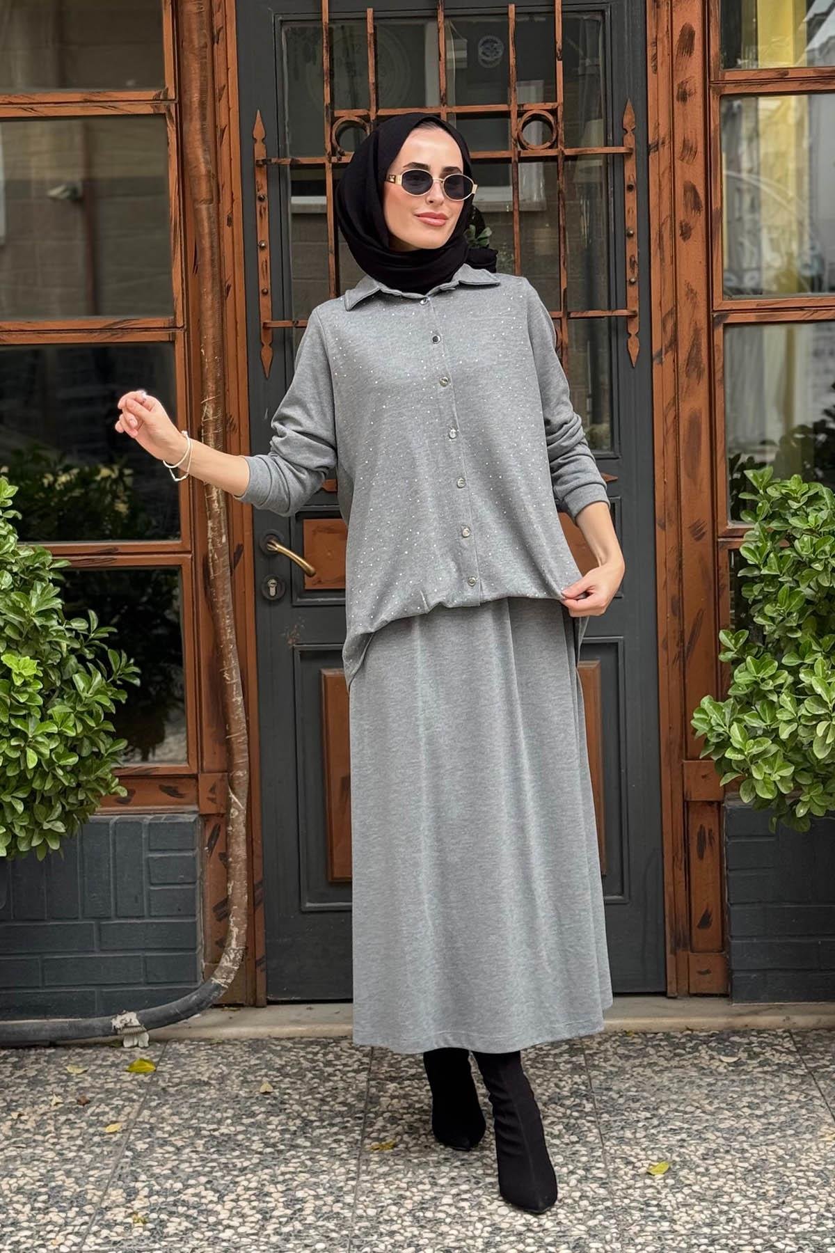 FUAT GÜRŞEN Etekli Takım 25K-4362 Gri