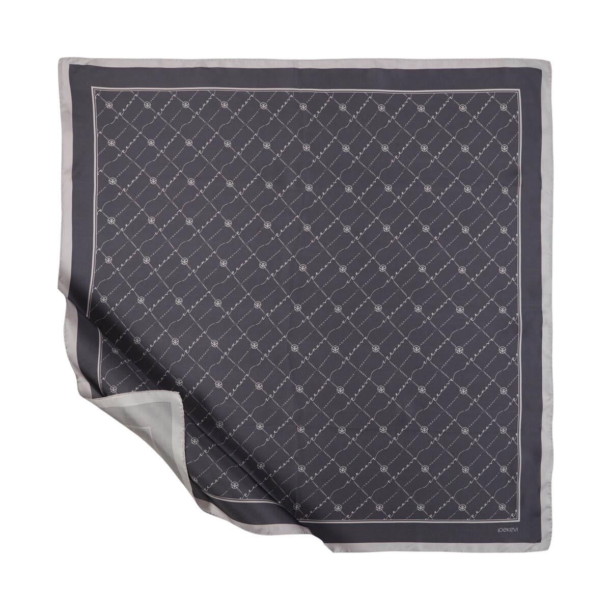 İpekevi Monogram Tivil İpek Eşarp 01141 Antrasit (01141)