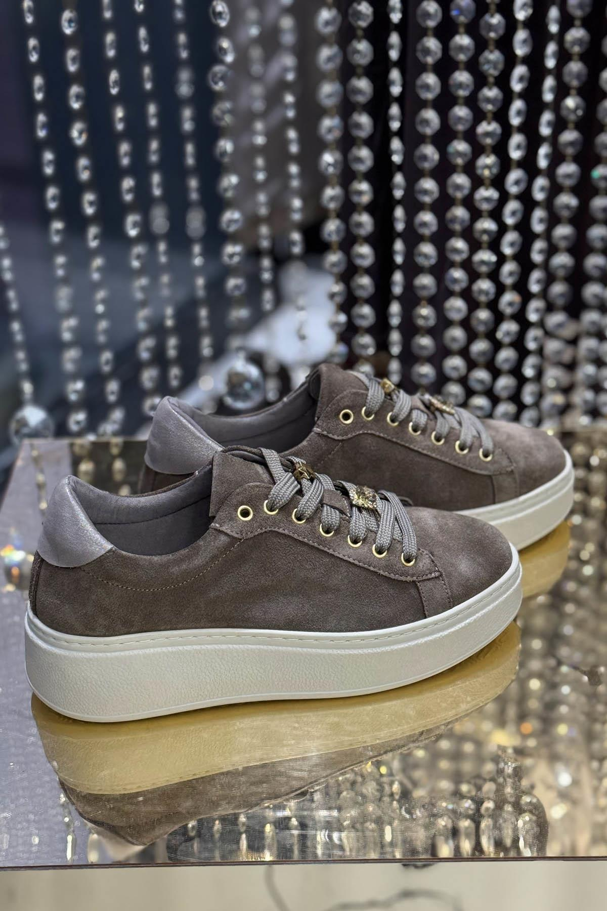 MAJENSIA Süet Taşlı Spor Ayakkabı 251081 Vizon