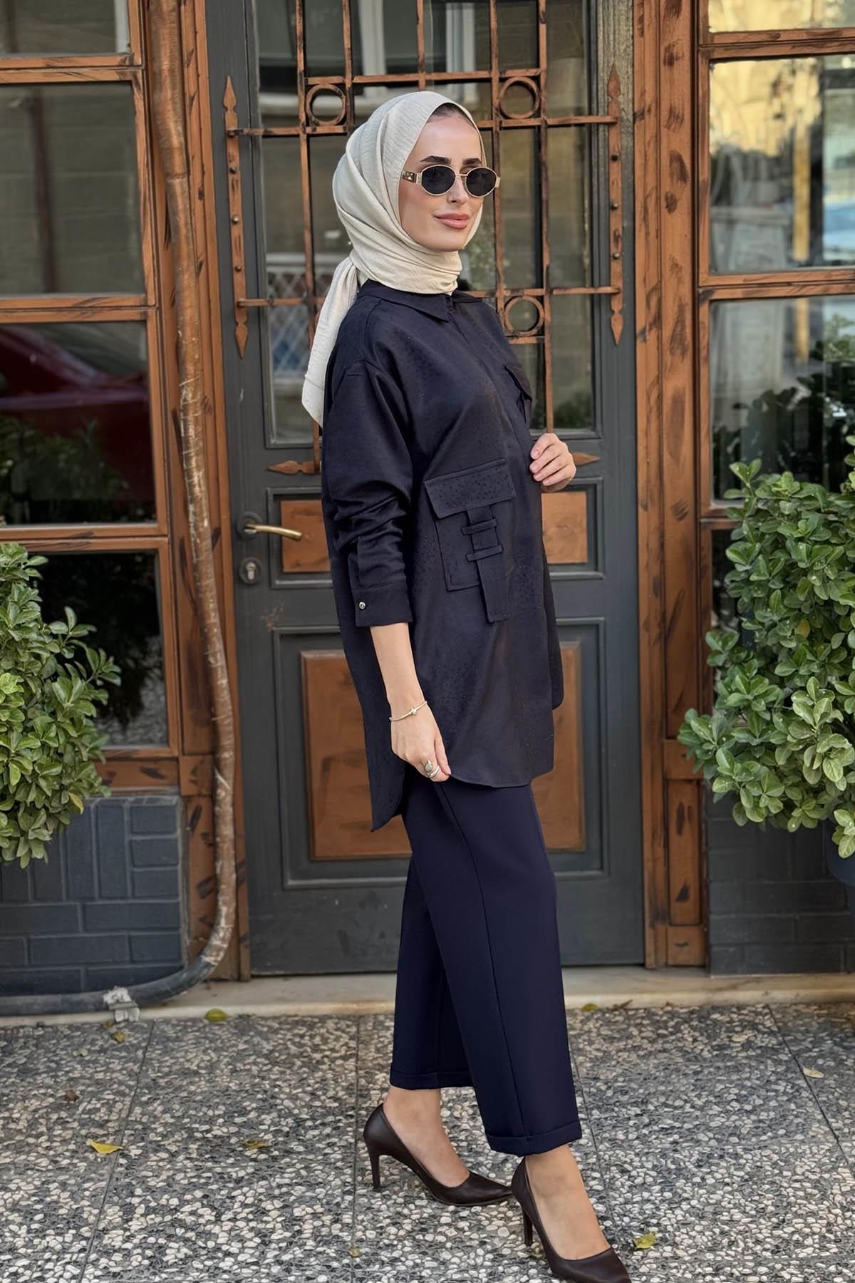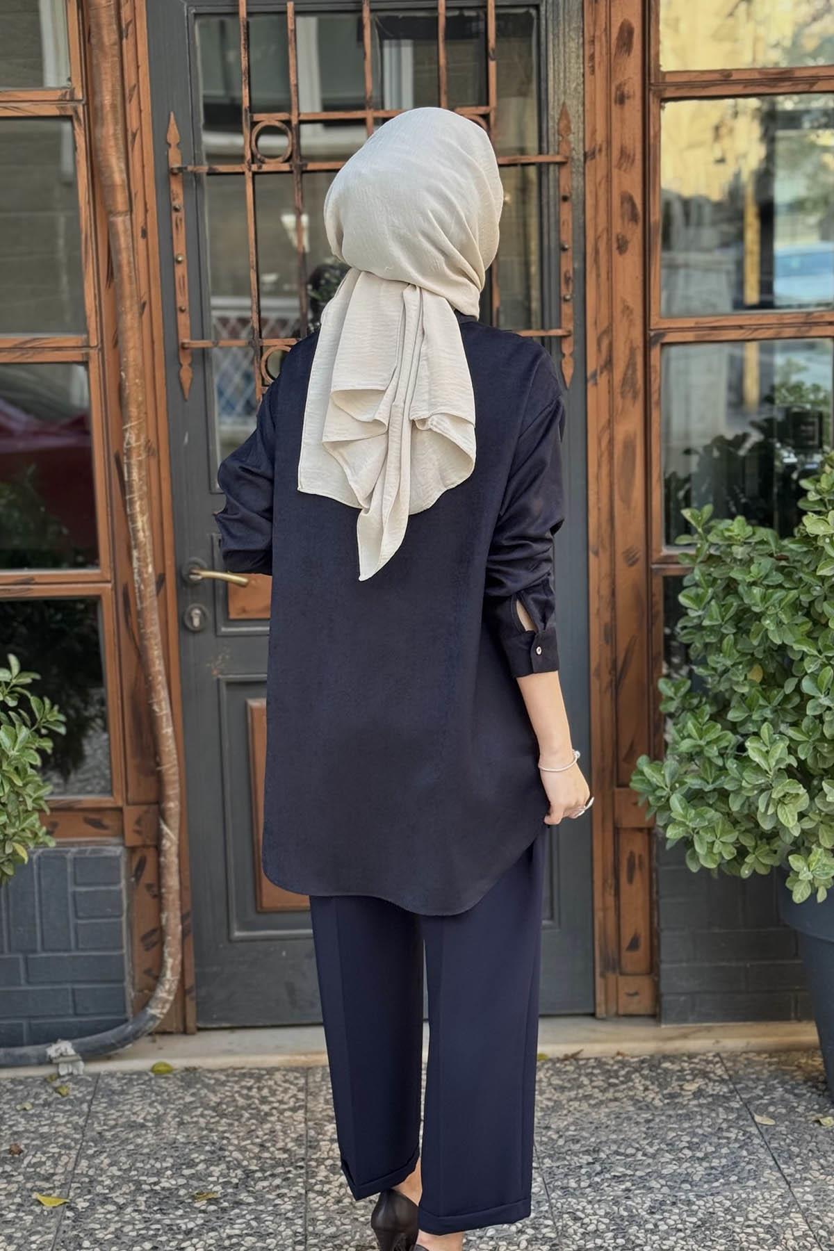 Moodbasic Taşlı Süet Gömlek MB11.295 Lacivert (MB11.295)